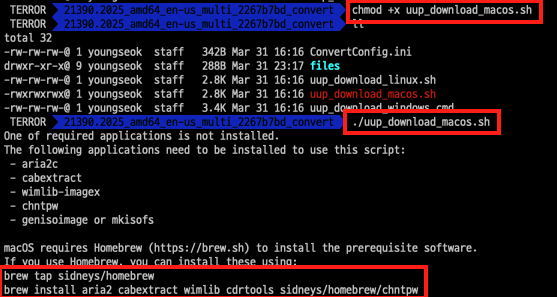 brew install aria2 cabextract wimlib cdrtools sidneys/homebrew/chntpw