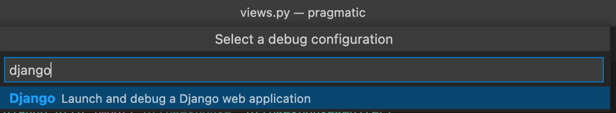디버그 설정을 선택하라고 나오면 django를 선택하거나, 안보이는 경우 검색을 통해 선택한다.
