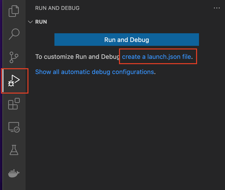 vscode 우측에 벌레 모양의 이모티콘을 선택한다.
